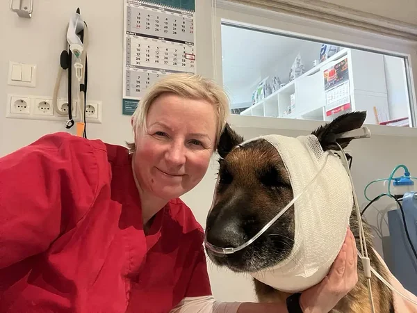 Operatsiooni järgselt tehtud foto- dr. Säre koos Santaga.